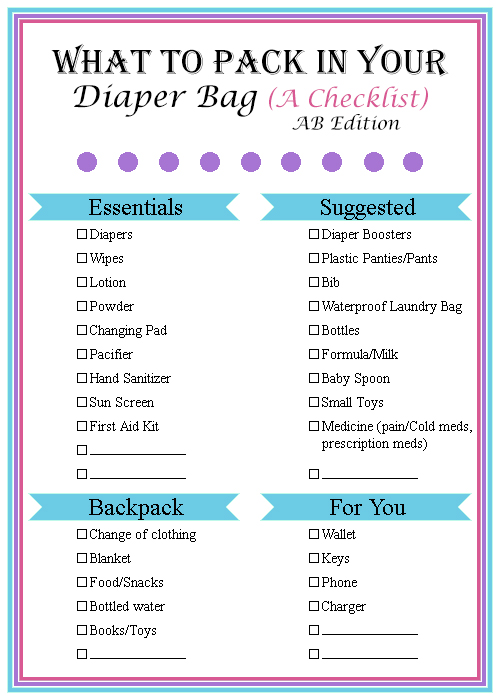 Diaper Bag Checklist! (AB Version)