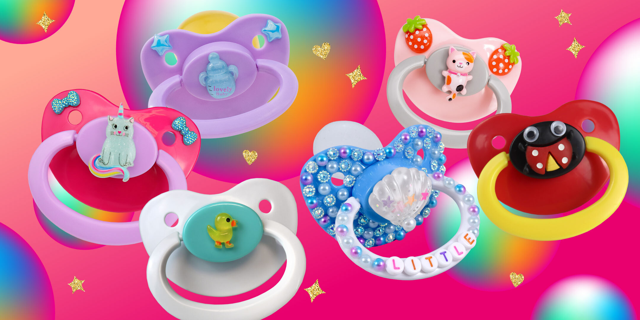 Decorating a pacifier is so much more than just a craft. It is a wonderful way for littles and adult babies to express themselves and create something that is entirely their own, all while spending quality time with mommy, daddy, or a caregiver. Gather up those supplies, put on some favourite tunes, and get creating. We cannot wait to see what gets made!?